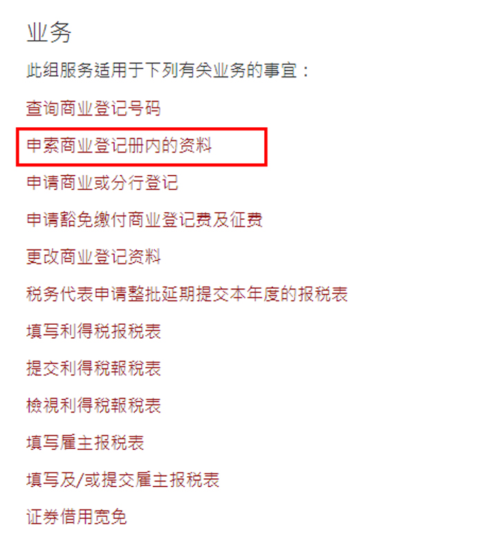 (申請商業(yè)登記冊內(nèi)的資料)輸入商業(yè)登記號碼