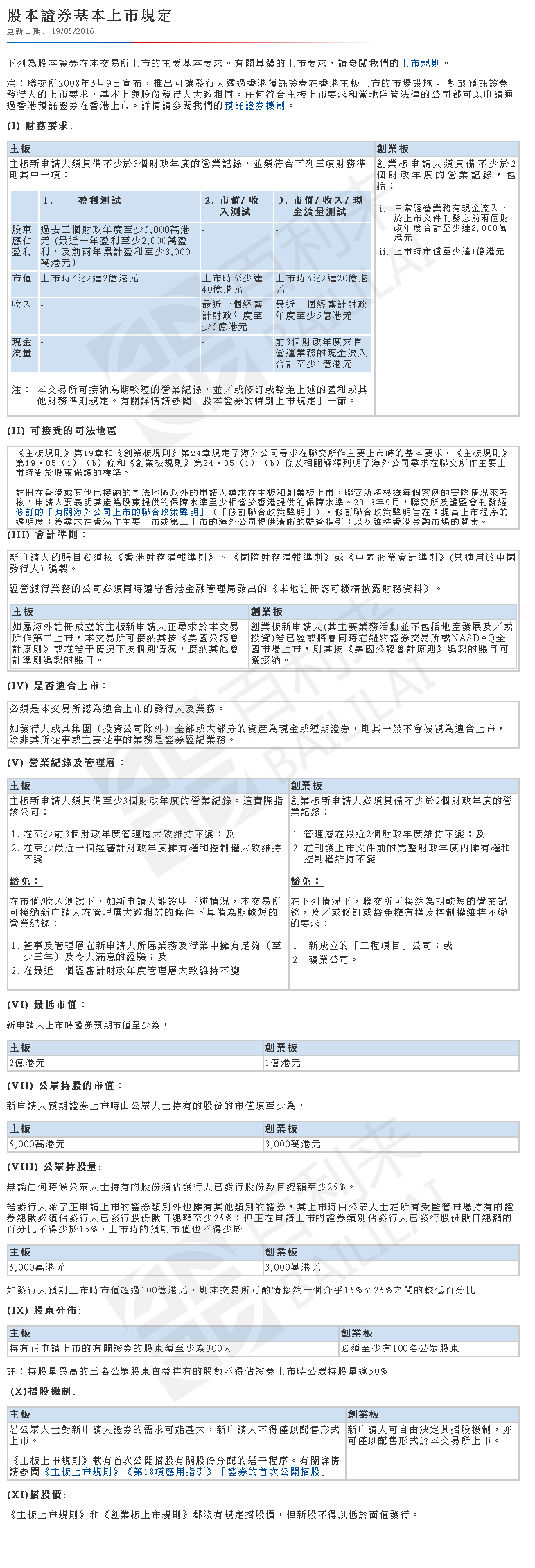 | 對比項(xiàng)目 | 香港主板 | 香港創(chuàng)業(yè)板 |