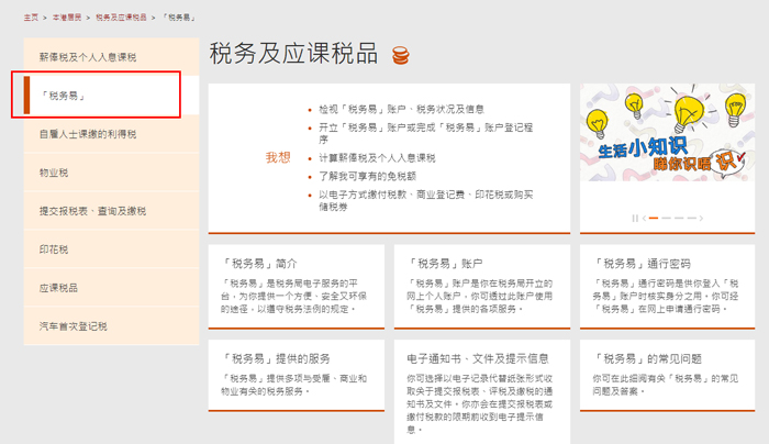 三、進(jìn)入香港稅局官方網(wǎng)站,找到“電子服務(wù)”,進(jìn)入“稅務(wù)易”頁面;