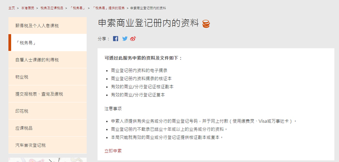 四、點(diǎn)擊在“稅務(wù)易提供的服務(wù)”進(jìn)入“申索商業(yè)登記冊內(nèi)的資料”;