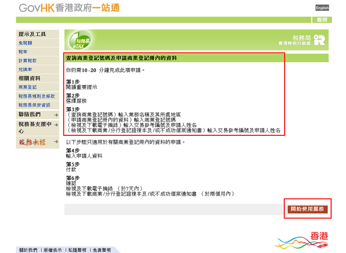 六、進(jìn)入立即申索的頁面后,會出現(xiàn)“查詢商業(yè)登記號碼及申請商業(yè)登記冊內(nèi)的資料”,按照步驟進(jìn)行查詢: